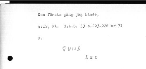 //// Den första gång jag kände, //// . //// 4:12, NÅ. S.L.S. 53 s.223-226 nr 71 //// N. //// Mel //// Mi ' ////