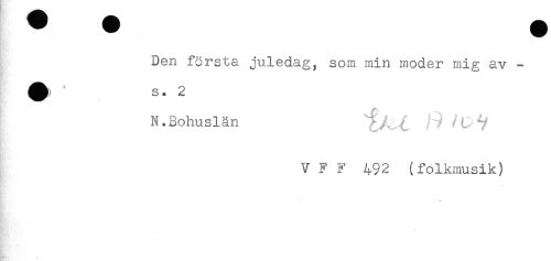 //// Den första juledag, som min moder mig av - //// N.Bohuslän ^ ^ //// V F F 492 (folkmusik) //// * * ////