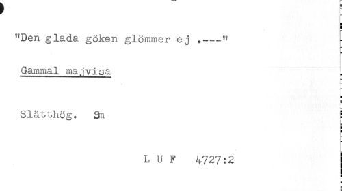 //// g //// H //// \ //// "Den glada göken glömmer ej .- //// Gammal majvisa //// r* //// < //// H //// Slätthög. 3n j //// t //// L U F 4727:2 ] //// H ////