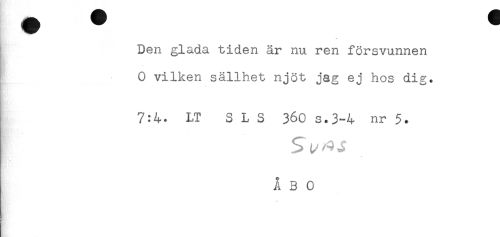 //// Den glada tiden är nu ren försvunnen //// O vilken sällhet njöt jag ej hos dig. //// 7:4. LT S L S 360 s.3-4 nr 5. ////
