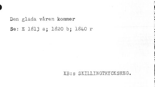 //// - //// L //// Den glada våren kommer ? //// I //// Se: E 1313 a; 1320 b; 1340 r - //// f //// r //// i //// t //// i //// i //// ! //// f //// KB:s SKILLINGTRYCKSREG. //// H //// f //// i ////