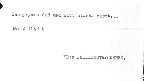 //// Den grymma död med sitt starka skott... //// Se: Z I646 b //// t //// t //// ! //// i //// i //// ! //// i //// KB:s SKILLINGTRYCKSREG. //// H //// L ////
