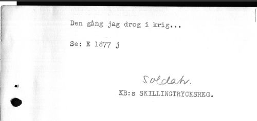 //// . ... t //// Den gång jag drog i krig... //// Se: E 1S77 j //// KB:s SKILLINGTRYCKSREG. //// ^ A ////