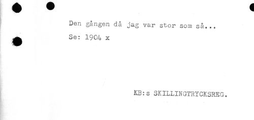 //// Den gången då jag var stor som så... //// ^ Se: 1904 x //// KB:s SKILLINGTRYCKSREG. ////