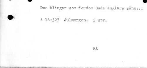 //// Den klingar som fordom Guds änglars sång... //// HSas //// A 16:32? Julmorgon. 5 str. //// * //// RA ////