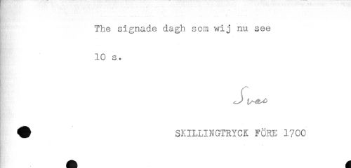 //// The signade dagh som wij nu see //// 10 s< //// ^ SKILLINGTRYCK FÖRE 1700 ////