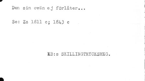 //// Den sin ovan ej förlåter... //// f //// Se: Zz 1311 c; 1643 c //// i //// < //// KB:s SKILLINGTRYCKSREG. //// i //// s //// i //// c ////