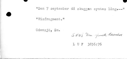 //// "Den 7 september då skuggan syntes lång-? -" //// ^Visfragment." //// Odensjö^ Sm. //// L U F 3^56:76 ////