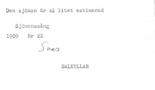 //// Den sjöman är så litet estimerad //// Sjömanssång //// * //// 1909 Nr 22 //// J) //// DALKULLAN ////