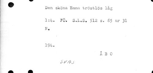 //// Den sköna Emma tröstlös låg //// 1:4. ?Ö. S.L.S. 512 s. 85 nr 31 //// N. //// 194. //// ÅBO ////