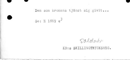 //// Den som kronans tjänst sig givit... //// ^ Se: E 1369 e" //// KB:s SKILLINGTRYCKSREG. ////