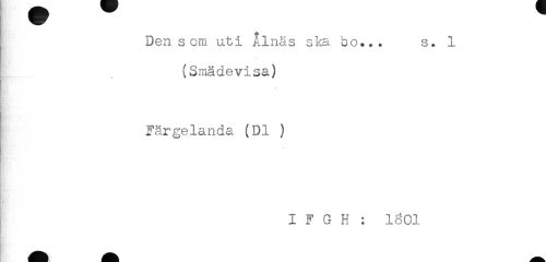 //// Den som uti Ålnäs ska bo... s. 1 //// (Smädevisa) //// Hr* * //// Färgelanda (Dl ) //// I F G H : 1^01 ////