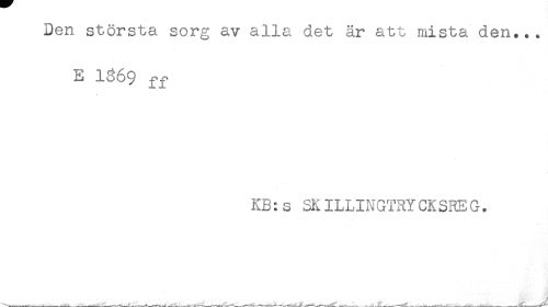 //// Den största sorg av alla det är att mista den... //// E 1869 ff //// KB:s SKILLINGTRYCKSREG. ////