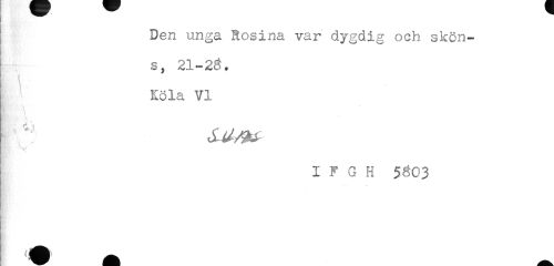 //// Den unga Rosina var dygdig och skön- //// s, 21-23. //// *-* //// Köla VI //// g \ //// I F G H $803 ////