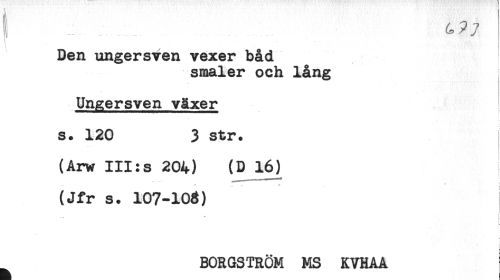 //// ; , ... //// Den ungersven vexer båd //// småler och lång //// Ungersven växer //// s. 120 3 str. //// (Arw III:s 204) (D 16) //// (Jfr s. 107-106) //// BORGSTRÖM MS KVHAA I ////