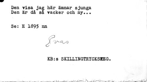 //// Den visa jag här ämnar sjunga //// Den är då så vacker och ny... //// Se: E 1395 nn //// KB:s SKILLINGTRYCKSREG. ////