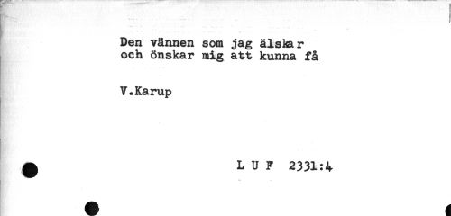 //// Den vännen som jag älslar //// och önskar mig att kunna få //// V.Karup //// ^ L U F 2331:4 //// . ////