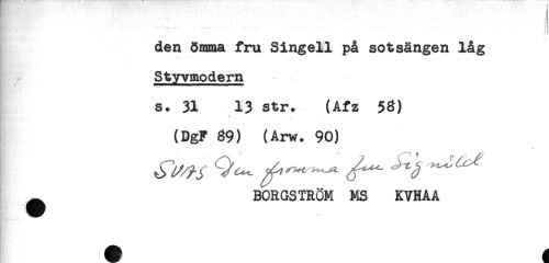 //// H* K //// '1 ' - - . : '- - . ^ - ** " ' ^ ( //// den ömma fru Singel! på sotsången låg //// Styvmodern //// s. 31 13 str. (Afz 53) //// (DgF 39) (Arw. 90) //// ^ BORGSTRÖM MS KVHAA ////