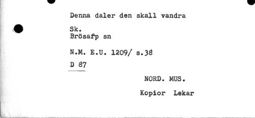 //// Denna daler den skall vandra //// T-' //// ^ Brösafp sn //// N.M. E.U. 1209/ s.3% //// D 67 //// NORD. MUS. //// Kopior Lekar ////