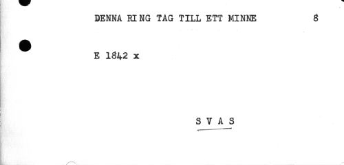 //// DENNA RING TAG TILL ETT MINNE g //// ..... //// ^ E 1342 x //// HhT //// P //// S V A S //// -, --- ////