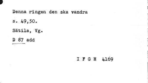 //// < //// I //// Denna ringen den ska vandra //// s. 49,50. //// Sätila, Vg. ; //// D add ' //// i //// I F G H 4169 //// c //// k . ////