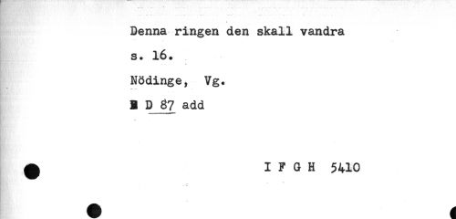 //// Denna ringen den skall vandra //// s. 16. //// ... * . * //// Nödinge, Vg. //// H D 87 add //// ^ I F G H 5410 //// * ^ ////