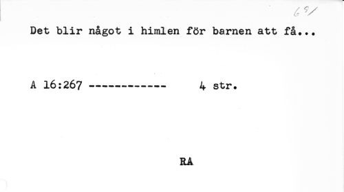 //// Det blir något i himlen för barnen att få... //// . < * //// A 16:267 ---- 4 str. //// RA ////