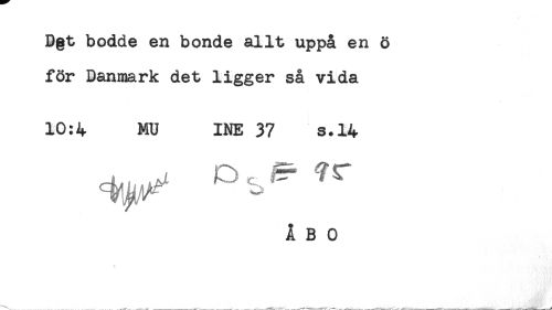 //// Dgt bodde en bonde allt uppå en ö //// för Danmark det ligger så vida //// 10:4 MU INE 37 s.14 //// ÅBO ////