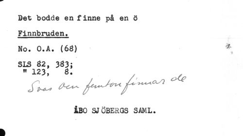 //// Bet bodde en finne på en ö //// Finnbruden. //// No. O.A. (63) ^ //// j //// SLS 82, 383; //// " 123, 8. //// iBO SJÖBERGS SAML. ////