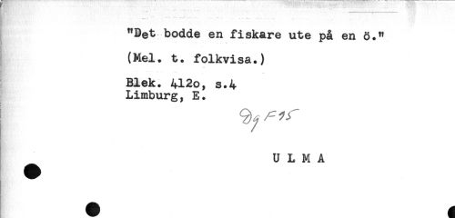 //// - . //// j "Bet bodde en fiskare ute på en ö." //// (Mel. t. folkvisa.) //// Blek. 412o, s.4 //// Limburg, E. //// U L M A ////