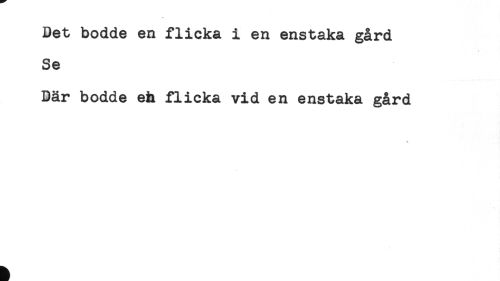 //// Det bodde en flicka i en enstaka gård //// Se //// Där bodde eh flicka vid en enstaka gård ////