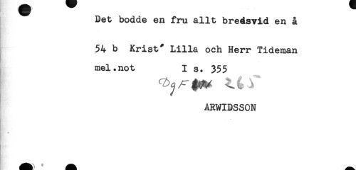 //// Det bodde en fru allt bredsvid en å //// 54 b Krist* Lilla och Herr Tideman //// mel.not I s. 355 //// ARWIDSSON //// * ////