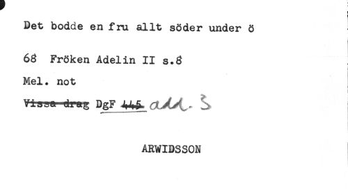//// Bet bodde en fru allt söder under ö //// 63 Fröken Adelin II s.3 //// r //// ) //// Mel. not //// j //// Vijja dug DgF ^ //// - //// ARWIDSSON ////