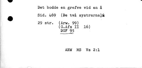 //// Det bodde en grefve vid en å //// ^ Sid. 469 (De två systrarna)& //// 29 str. (Arw. 99) //// (G.Afz II 16) //// DGF 95 //// B //// C. ' //// a //// { //// ARW MS Vs 2:1 //// _ _ _ ////