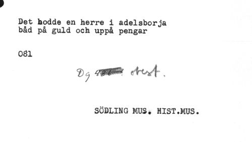 //// Det hodde en herre i adelsborja //// båd på guld och uppå pengar //// 031 //// SÖDLING MUS. HIST.MUS. ////