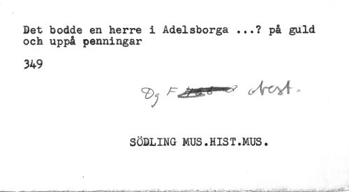 //// * //// Det bodde en herre i Adelsborga ...? på guld //// och uppå penningar //// 349 //// SÖDLING MUS.HIST.MUS. ////