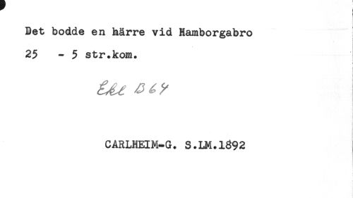 //// ! //// Det bodde en härre vid Hamborgabro //// i //// i //// 25 - 5 str.kom. //// < //// CARLHEIM-G. S.LM.1892 ////