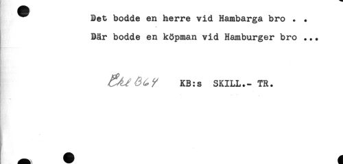 //// Bet bodde en herre vid Hambarga bro . . //// Bär bodde en köpman vid Hamburger bro ... //// KB:s SKILL.- TR. //// f ////