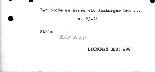 //// Dgt bodde en herre vid Hamburger bro ... //// # s. 23-24 //// Sthlm //// LIUNGMAN GBB: 499 //// s ////