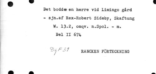 //// Det boddas en herre vid Limingo gård //// - sjn.af Rex-Robert Sideby, Skaftung //// W. 13.2, omqv. n.Spol. - m. //// Del II 674 //// RANCKEN FÖRTECKNING //// ^ - ////