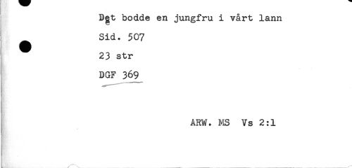 //// Dgt bodde en jungfru i vårt lann //// Sid. 507 //// ^ 23 str //// DGF 369 //// ARW. MS Vs 2:1 ////