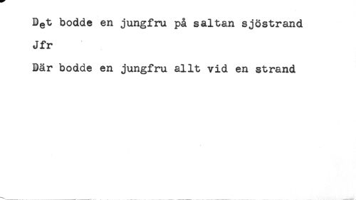 //// Be^ bodde en jungfru på sältan sjöstrand //// Jfr //// Bär bodde en jungfru allt vid en strand ////