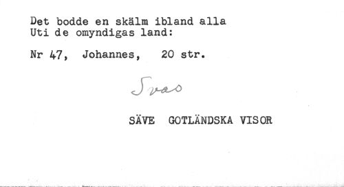//// Det bodde en skälm ibland alla //// Uti de omyndigas land: //// Nr 47, Johannes, 20 str. //// J //// SÄVE GOTLÄNDSKA VIS OR ////