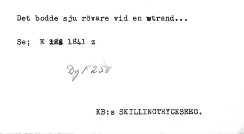 //// Det bodde sju rövare vid en wtrand... //// Se; E 1841 z //// KB:s SKILLINGTRYCKSREG. ////