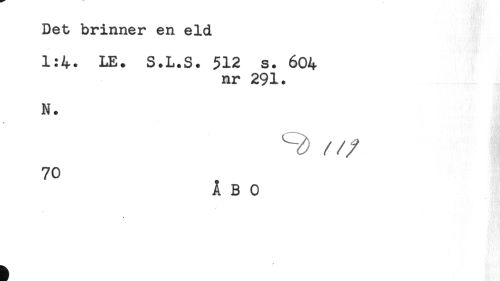 //// Det brinner en eld //// 1:4. LE. S.L.S. 512 s. 604 //// nr 291. //// N. //// S) //// ///7° * //// ÅBO //// * ////