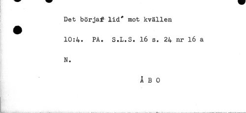 //// \ //// ! //// Det börjaf lid" mot kvällen //// Kr //// 10:4. PA. S.L.S. 16 s. 24 nr 16 a //// N. //// ÅBO ////