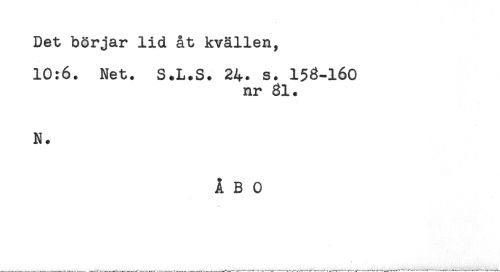//// Det börjar lid åt kvällen, //// 10:6. Net. S.L.S. 24. s. 153-160 //// nr 81. //// N. //// ÅBO ////