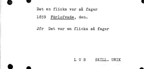 //// Det en flicka var så fager //// 1359 Förlofvade, den. //// Jfr Det var en flicka så fager //// L U B SKILL. UNIK ////