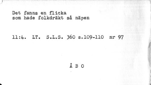 //// Det fanns en flicka //// som hade folkdräkt så näpen //// 11:4. LT. S.L.S. 360 s.109-110 nr 97 //// - //// ' < //// ÅBO //// - //// ! //// S.T) ////