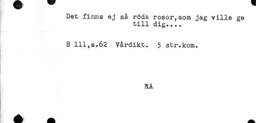 //// Det finns ej så röda rosor,som jag ville ge //// till dig.... //// B 111,s.62 Vårdikt. 5 str.kom. //// t //// RA ////